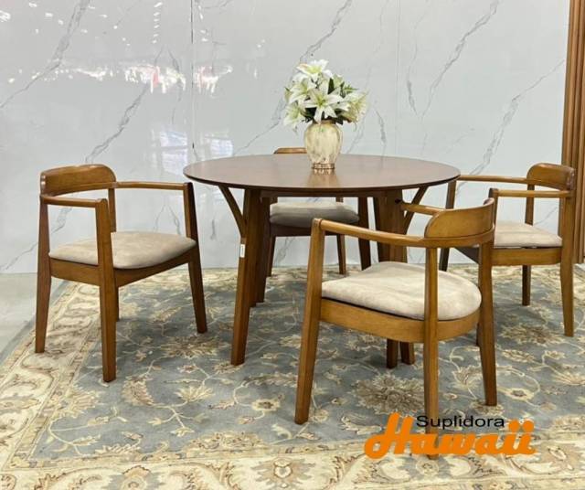 COMEDOR CONTEMPORANEO REDONDO 6/S TAPIZ/CREMA CLARO B.S