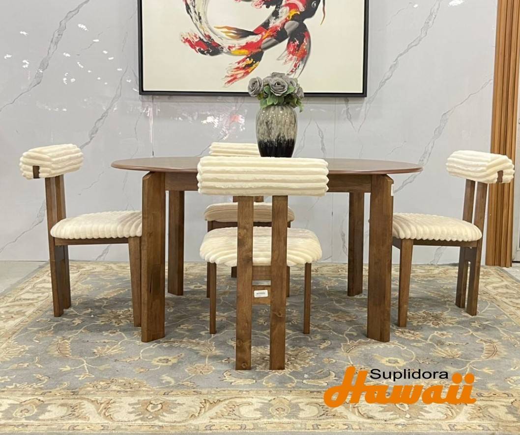 COMEDOR EN MADERA DT3196/DC3197 4/ST/OVALADO TAPIZ/BLANCO I.M