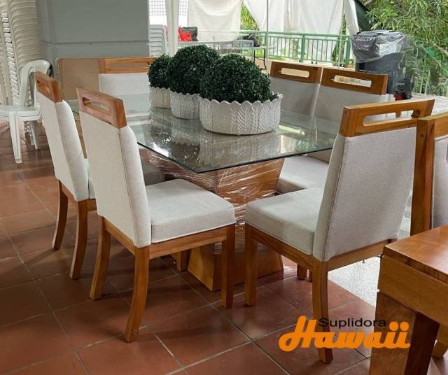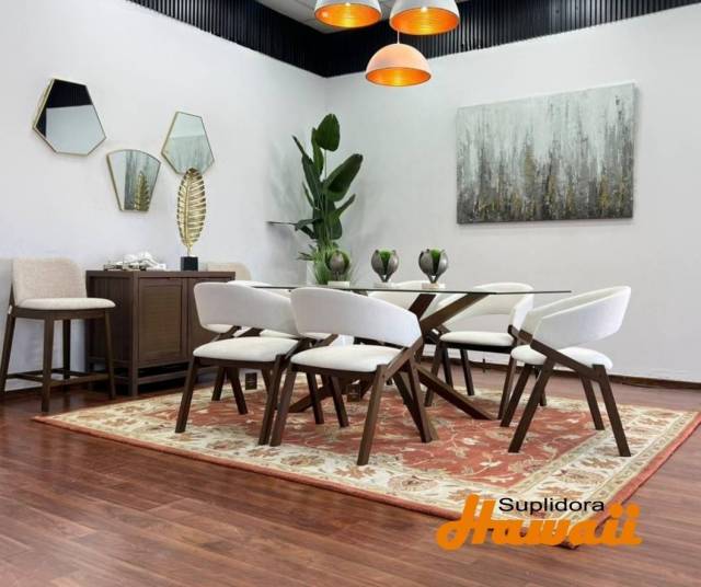 COMEDOR V 6/S NATURAL T/CRISTAL TAPIZ/BLANCO VINIL P.M