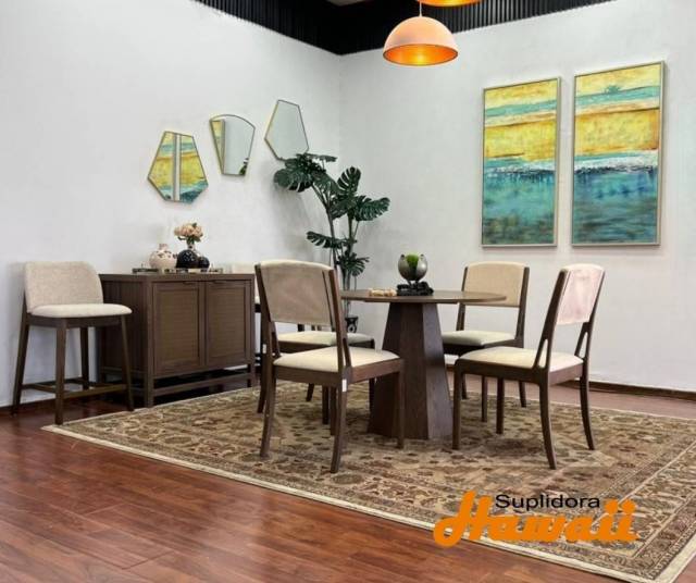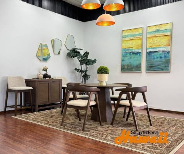 COMEDOR EN MADERA 4/S RDT014/DC197 OSC. T/REDONDO TAPIZ/CREMA I.M