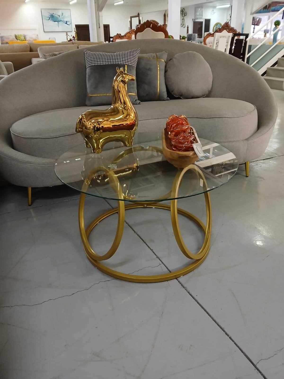 MESA D/CENTRO 852-LCT1028 T/CRISTAL REDONDA BASE DORADA I.M