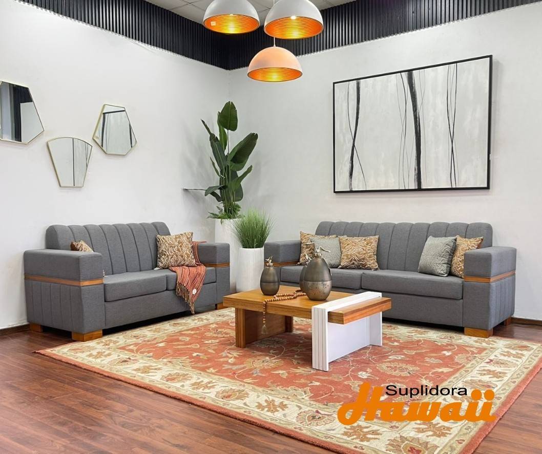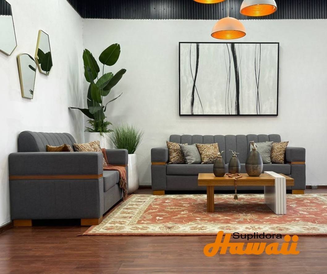 MUEBLE PARIS S/2 S/3 GRIS OSCURO CON FRANJA EN MADERA NATURAL