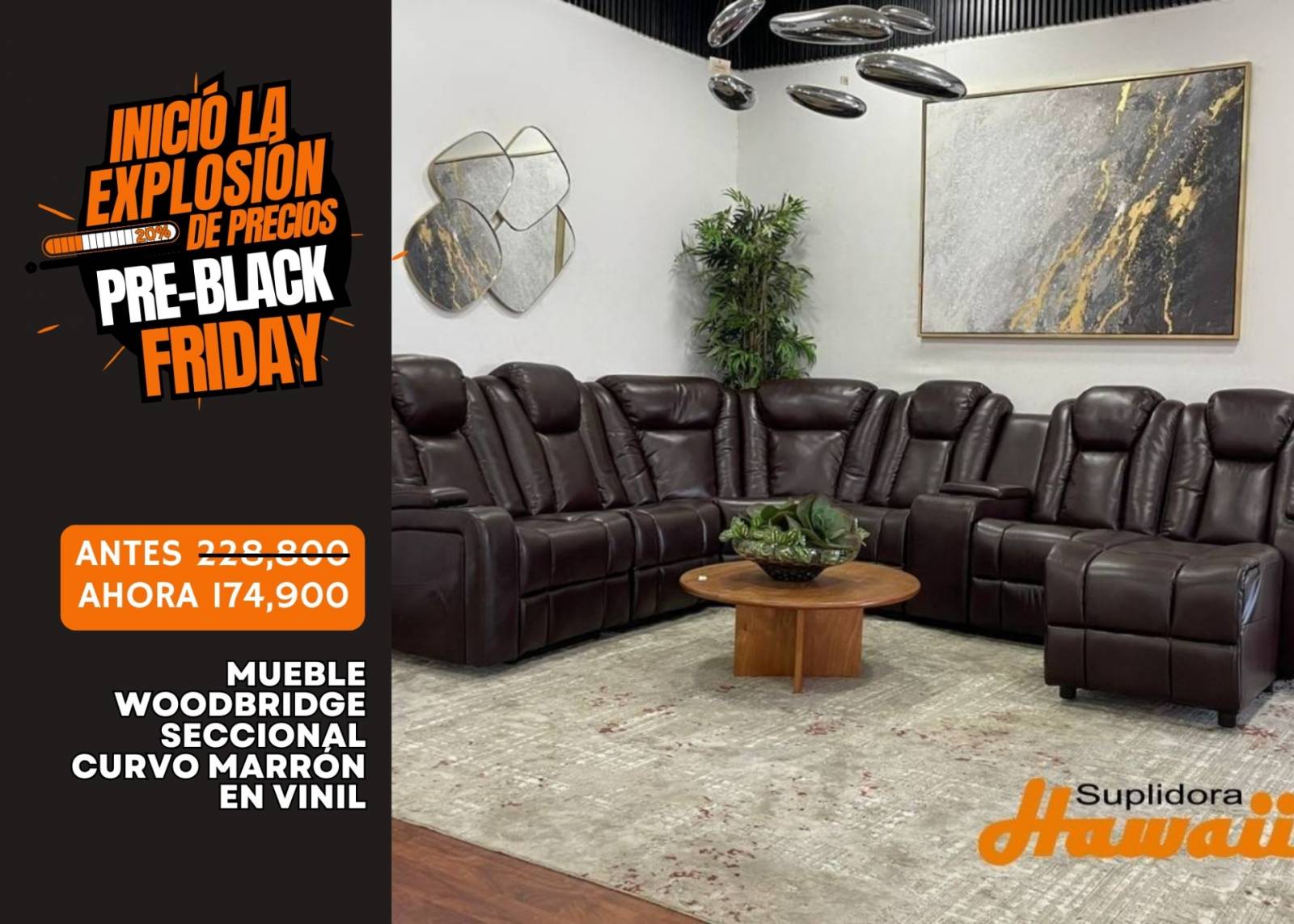 MUEBLE WOODBRIDGE SECCIONAL CURVO MARRON EN VINIL