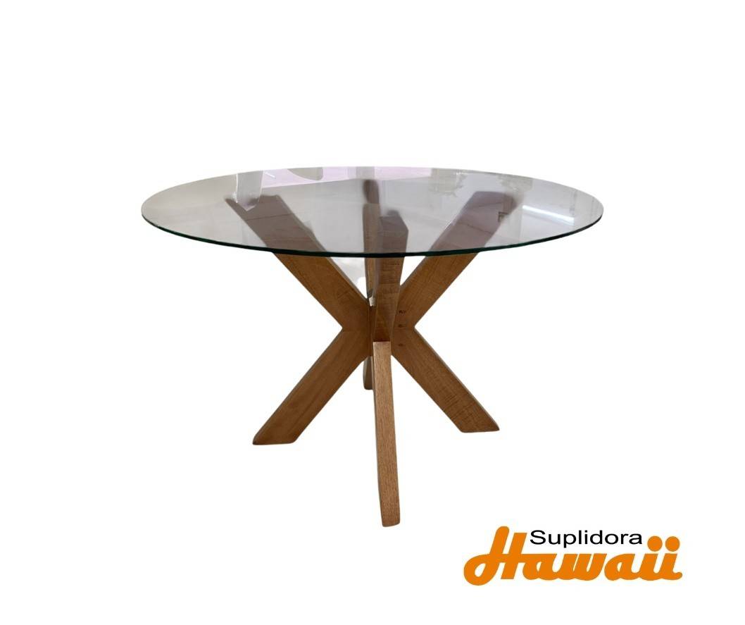MESA COMEDOR BASE TIPO K 4/S T/CRISTAL REDONDO P.M