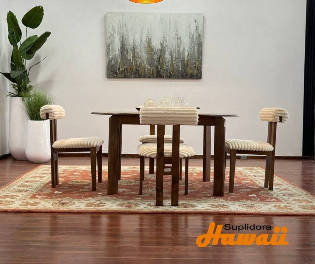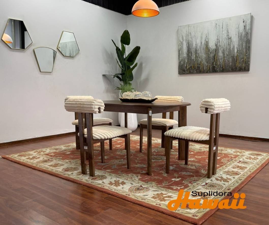 COMEDOR EN MADERA DT3196/DC3197 4/ST/OVALADO TAPIZ/BLANCO I.M